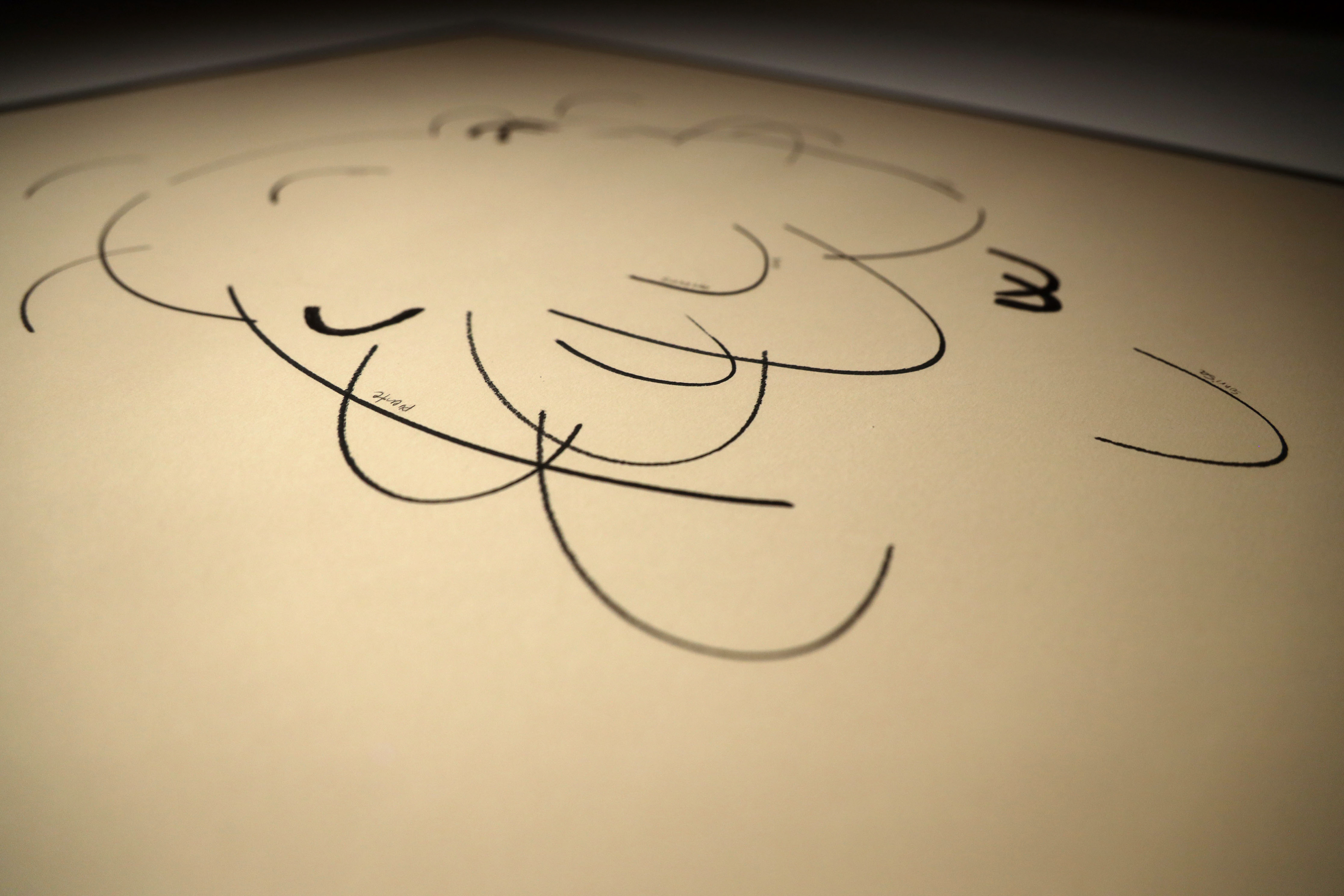 Series of 2 drawings Cotton paper, marker and pensil 50 x 70 cm This series of drawings emerges from a playful sequence in which strokes and words overlap on the paper. The relationship between language and line generates multiple meanings, where the subtlety of the stroke and the suggestions within the text invite the imagination. Through this interaction, the work creates a space where fiction and perception are simultaneously constructed, exploring the boundaries between what is seen and what is interpreted