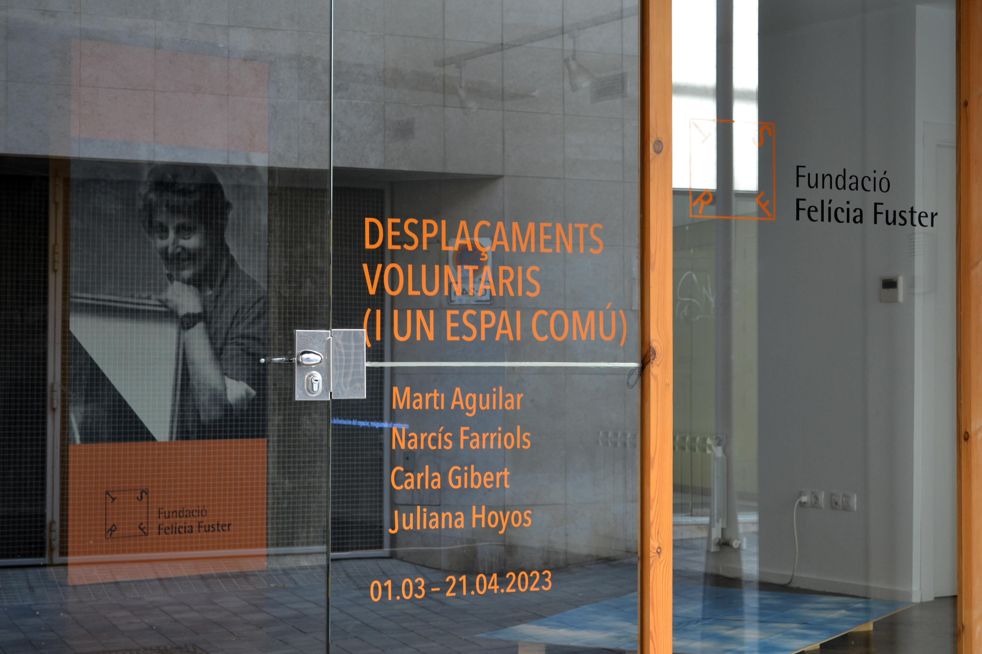 The exhibition " Voluntary Movements (and a Common Space)", presented at the Fuster Foundation, consists of works by Martí Aguilar, Narcís Farriols, Carla Gibert and Juliana Hoyos, who graduated recently in fine arts (2021/2022).