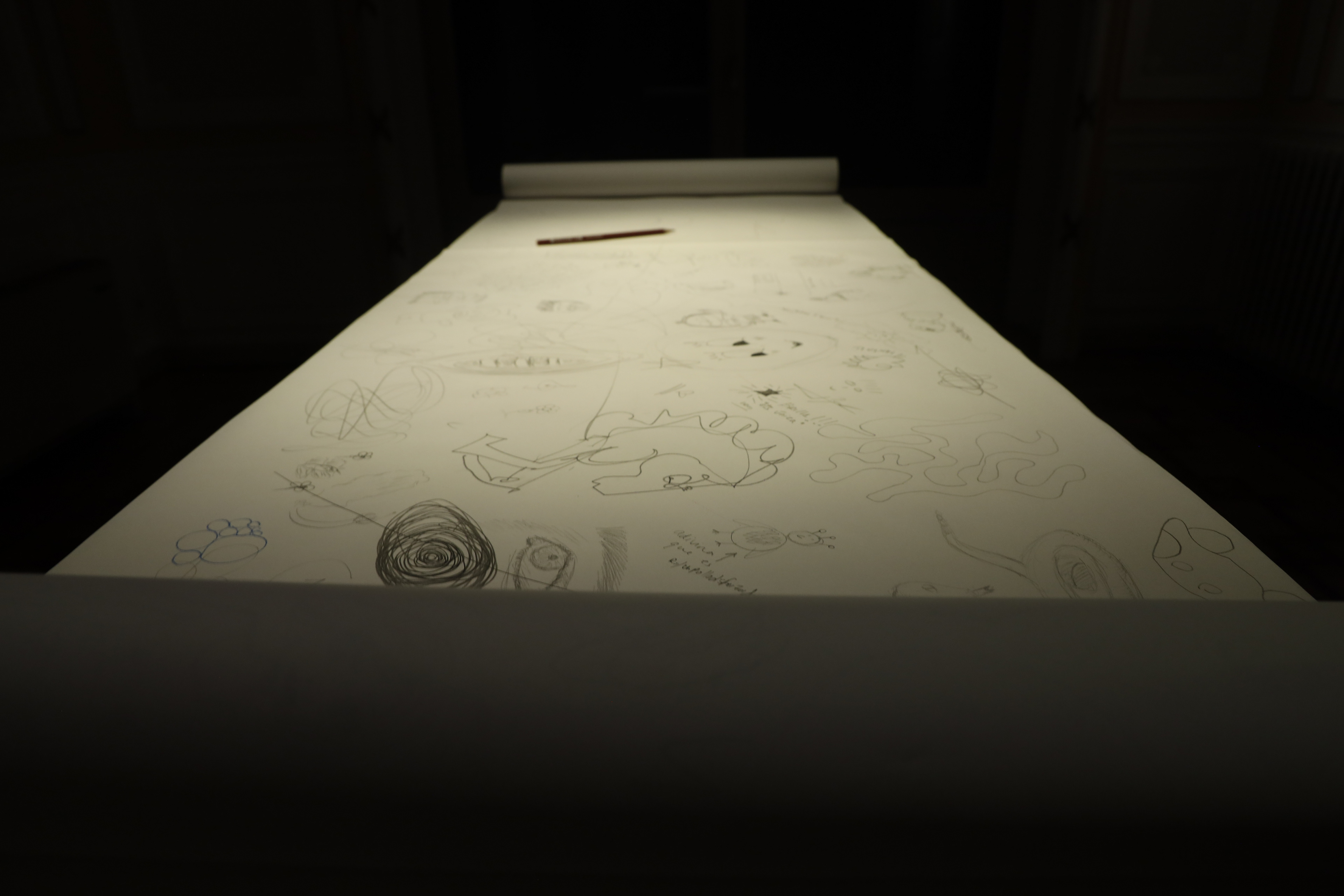 12''02' sound composition in an installation Drawing Attention is a sound composition that explores the interaction between rhythm, texture, and perception. The sound of a hand gliding across paper intertwines with open-ended, ever-evolving sequences, creating a sonic landscape that fluctuates between the tangible and the abstract. This fragment, with a beginning and an end rich in nuances, unfolds a temporal universe that captures attention and stimulates the creation of mental images. This sound piece extends into the exhibition space through an installation of the same name, inviting the public to freely intervene on the paper, drawing in response to the perceived sounds or simply letting themselves be carried away by the experience of the moment. The sound can act as a trigger for the movement of the hand, as an echo of the action, or as a wandering element inhabiting the space, transforming it into a place of creation. With ‘Drawing attention’, the relationship between sound, gesture, and perception becomes an open field of exploration, where listening and action intertwine in an immersive and ever-changing experience.