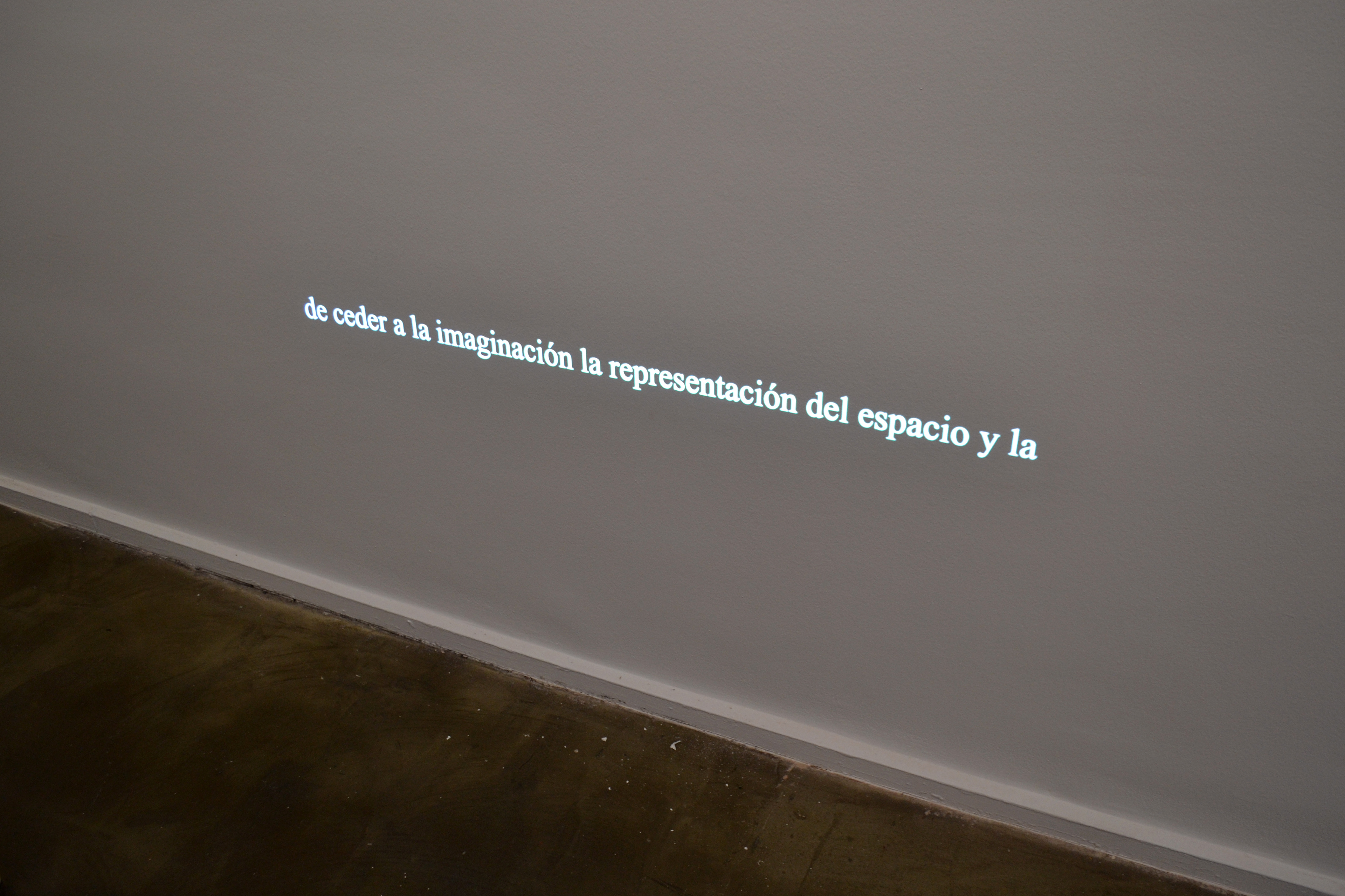 Text projected on the wall Variable dimensions Is a text projection that responds to the difficulty of physically representing the work My Invisible Box of Light, an installation that plays with the limits of perception and the materiality of light. The piece questions the nature of human perception, exploring light as the fundamental medium in the creation of images and in the construction of our visual experience of the world. The work proposes a reflection on what remains beyond the reach of our observation. Through its title, it suggests the presence of a "luminous box" that, although not visible in physical terms, invites us to consider what exists in space but cannot be seen. This concept engages with ideas related to the notion that all space is sensitive material, considering the direct relationship between the limits of the perceptual field and the principles of optics. Influenced by the paradox of the darkness of the cosmos — where darkness is composed of the light from stars that cannot reach us due to the speed at which they travel — the work questions the boundaries between the visible and the invisible, suggesting that what we do not perceive still impacts our experience of the environment.