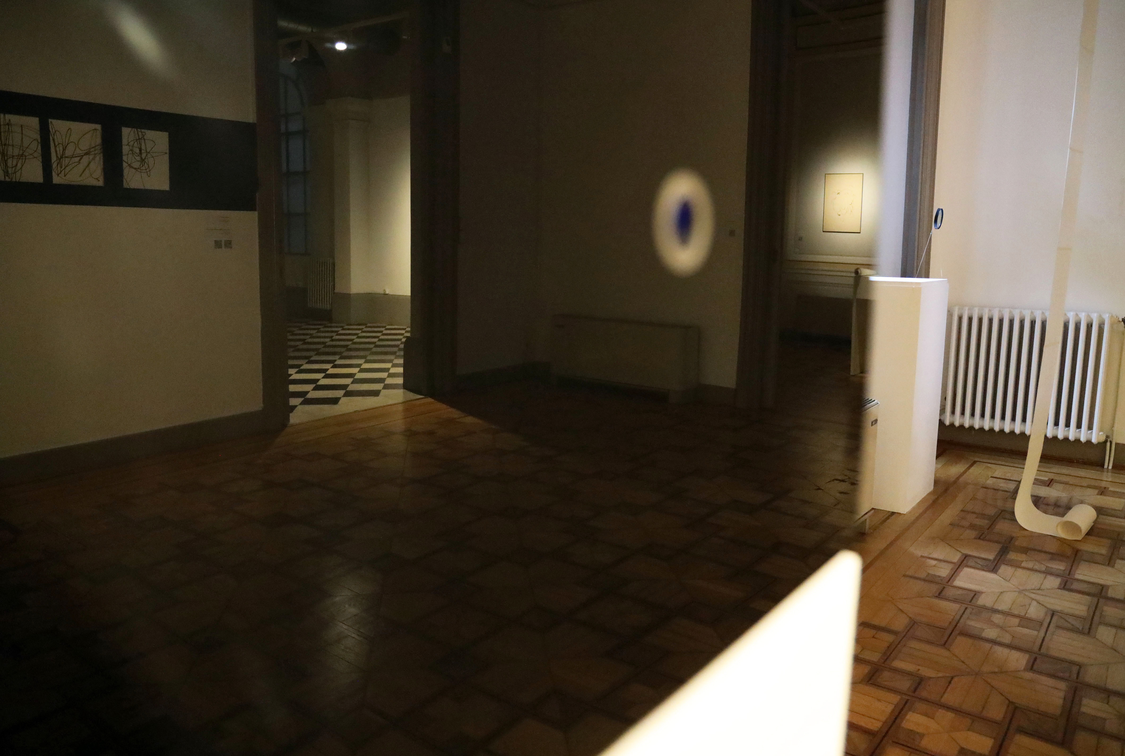 Next to it is «41.3945, 2.16592», an installation in front of one of the room's windows, in which the light from outside, as well as the view beyond, is now visible on the paper only through the magnifying glass that acts as a lens. Through the process of optical refraction, the scene depicted appears inverted, creating a composite image of the environment beyond the exterior of the house. Light manifests itself as the element that activates the poetics in question, in which the changing image is revealed to the rhythm of its movement, of a suspended time and of the dynamics of optics.