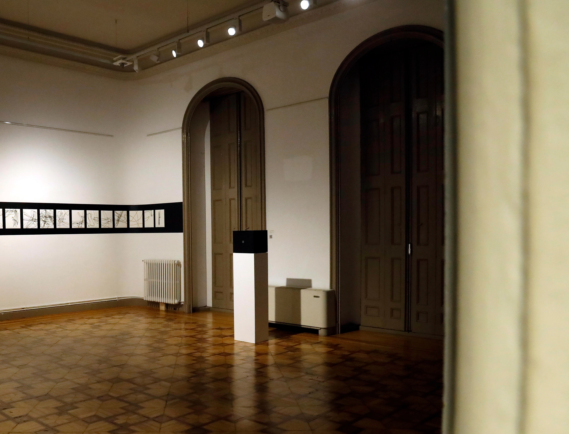 The sound is the protagonist in the side room. «Drawing attention», is a sound composition full of possibilities and different rhythms, in which we perceive the sound of a hand drawing on the paper that at the same time blurs and overlaps with other sound sequences of open character. A fragment with a beginning and an end rich in details that unfolds a temporal universe that calls for attention and the creation of mental images. The piece is combined with an installation titled in the same way, in which the artist invites the public to intervene a piece of paper and draw freely on it, letting themselves be carried away by the sounds perceived.